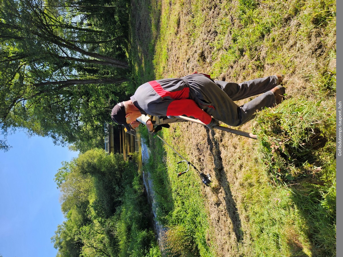 Home / ofilsdutemps-taupont.bzh / 2025 / Le Pont de l Abbaye les adherents au travail /